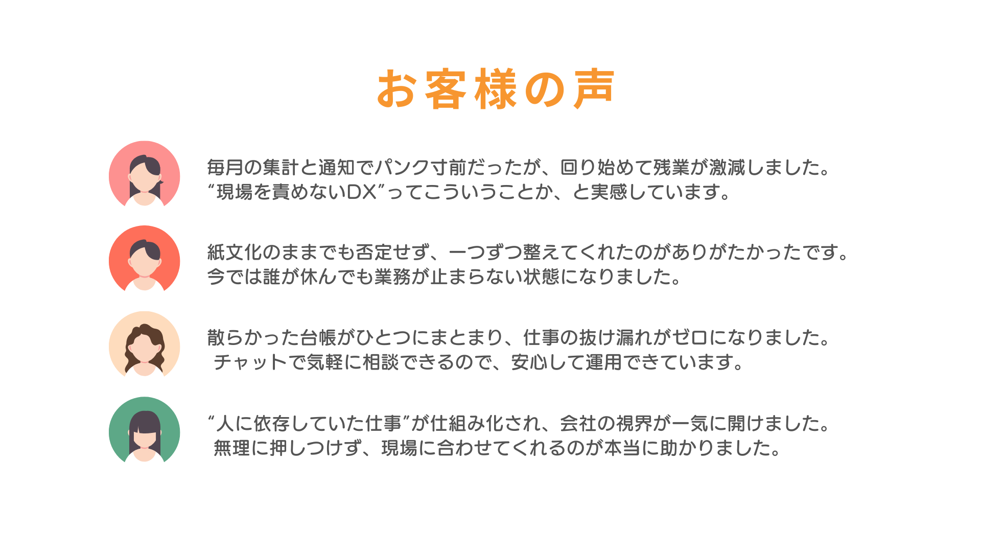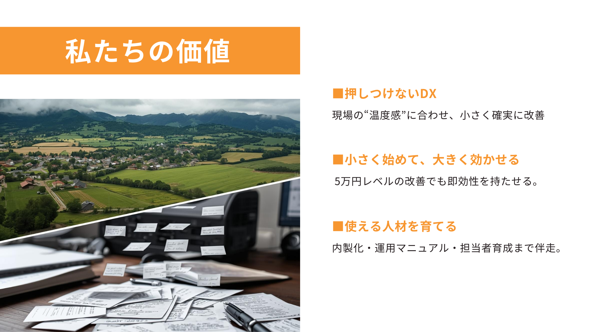 だからこそ、押しつけず、その場所のペースに合わせて整える。“現場にちょうどいい改善”を積み上げることが、この事業の核です。