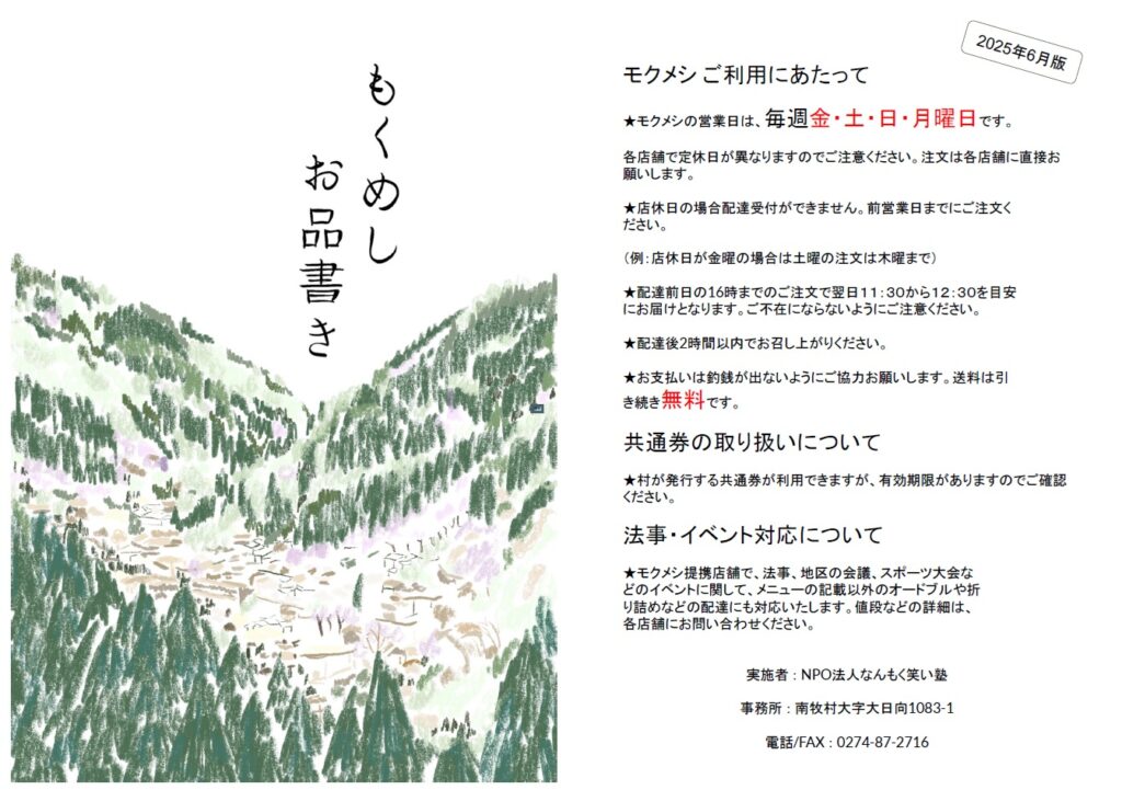 村の飲食店と村民をつなぐ、それがなんもく昼飯デリバリー通称モクメシです。